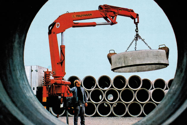 Redefining something new: In 1959 Richard Palfinger presents his first loader crane with a stiff boom system. In 1964 Hubert Palfinger brings the first hydraulic loader crane onto the market with a significantly extended outreach. In 1968 PALFINGER starts small series production with the first exports to France and Switzerland.