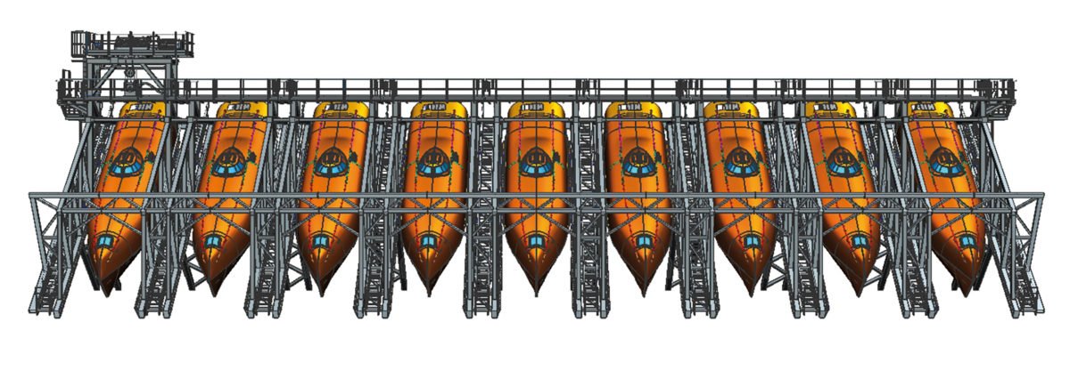 “In the past we had only delivered up to four systems in one structure. The Johan Sverdrup project required nine,” Oddgeir Maelen, Global Sales Manager at PALFINGER MARINE says. “The physical dimensions presented a real challenge, as the structure has a total length of around 55 meters and a tolerance of less than one centimeter. However, we knew we had the skills and experience to manage the job successfully.” The system’s incredible size isn’t the only thing special about the equipment delivered to the Johan Sverdrup site: “The lifeboats are a standard model according to our frame agreement with Statoil, but they are the first to be delivered with Lifeboat Navigation Assistant, including Automatic Escape System.” This special technology includes a servo steering unit and an autopilot that is activated during free-fall and guides the lifeboat away from the platform in an emergency situation.