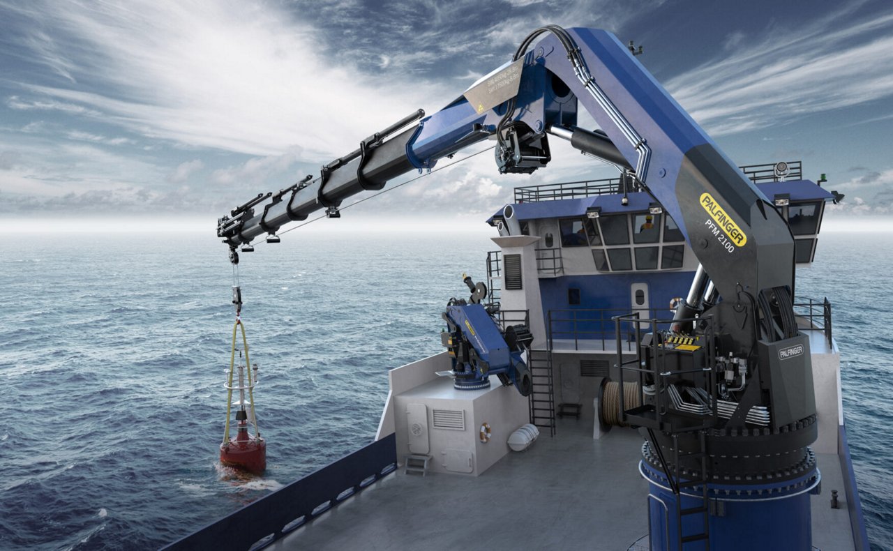 This year, PALFINGER launched the new PFM 2100 heavy-duty foldable knuckle boom crane specially developed for use on service and work boats as well as in the aquaculture industry.