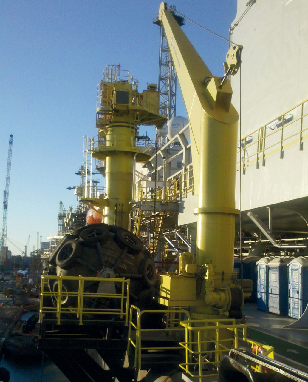 PALFINGER fender davits save the owner/operator a significant amount of time in preparing the vessel for ship-to-ship operations. Besides reducing operating time and costs, PALFINGER fender davits create a safer working environment for the crew.
