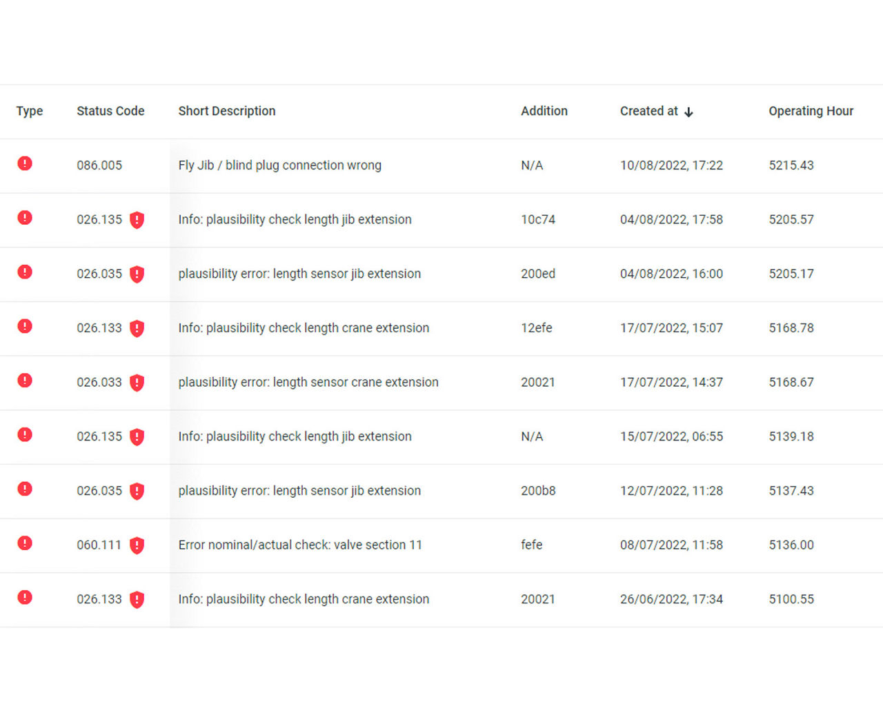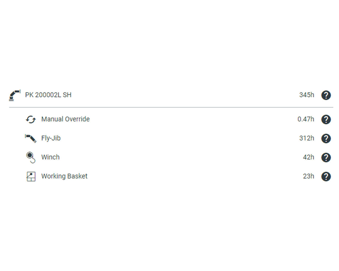 Not only the operating hours of the devices are displayed, but also those of accessories such as cable winches, work baskets and fly jibs.