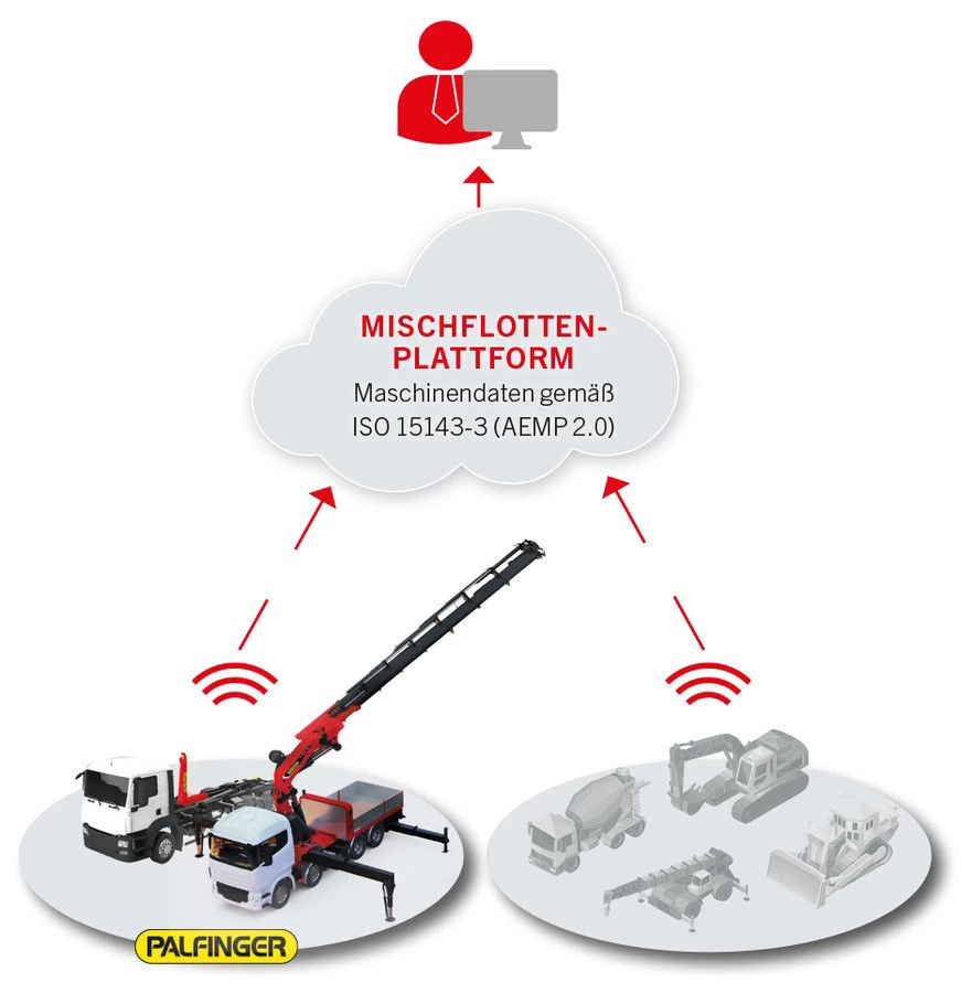 PALFINGER addresses the end customer´s mixed fleet issue by offering machinery data in the standardized ISO 15143-3 (AEMP 2.0) format. This enables integration into existing fleet management systems that show various kind of